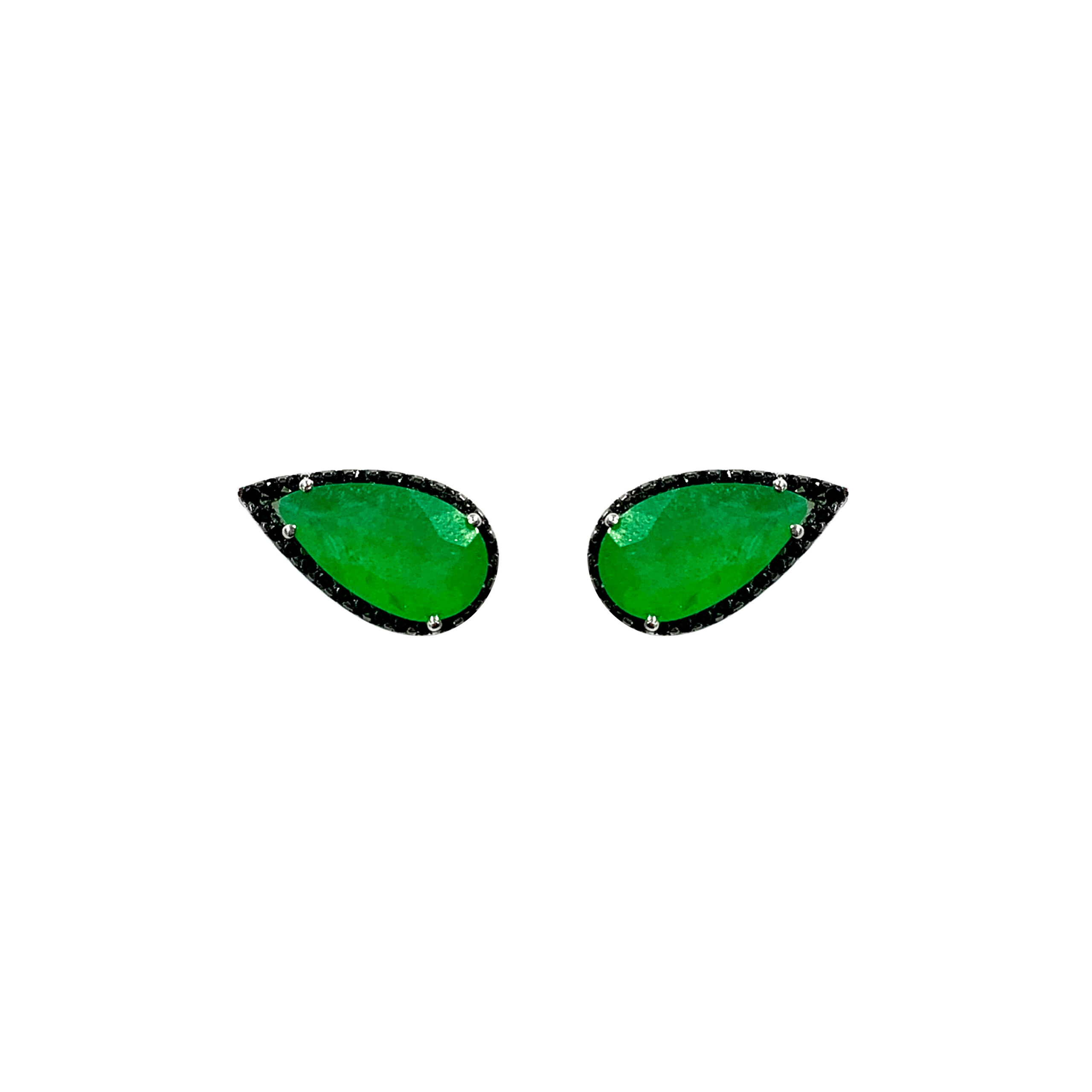 BRINCO EM PRATA DE LEI 925 COM ESPINÉLIO NEGRO, JADE E RÓDIO BRANCO