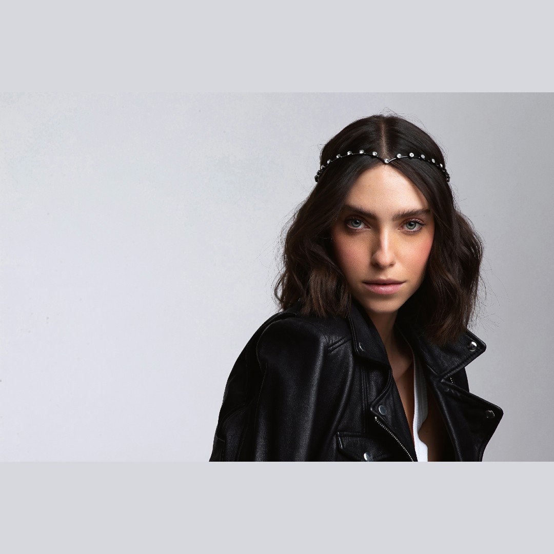 Headpiece anatomica fio “V” com cristais – banho negro