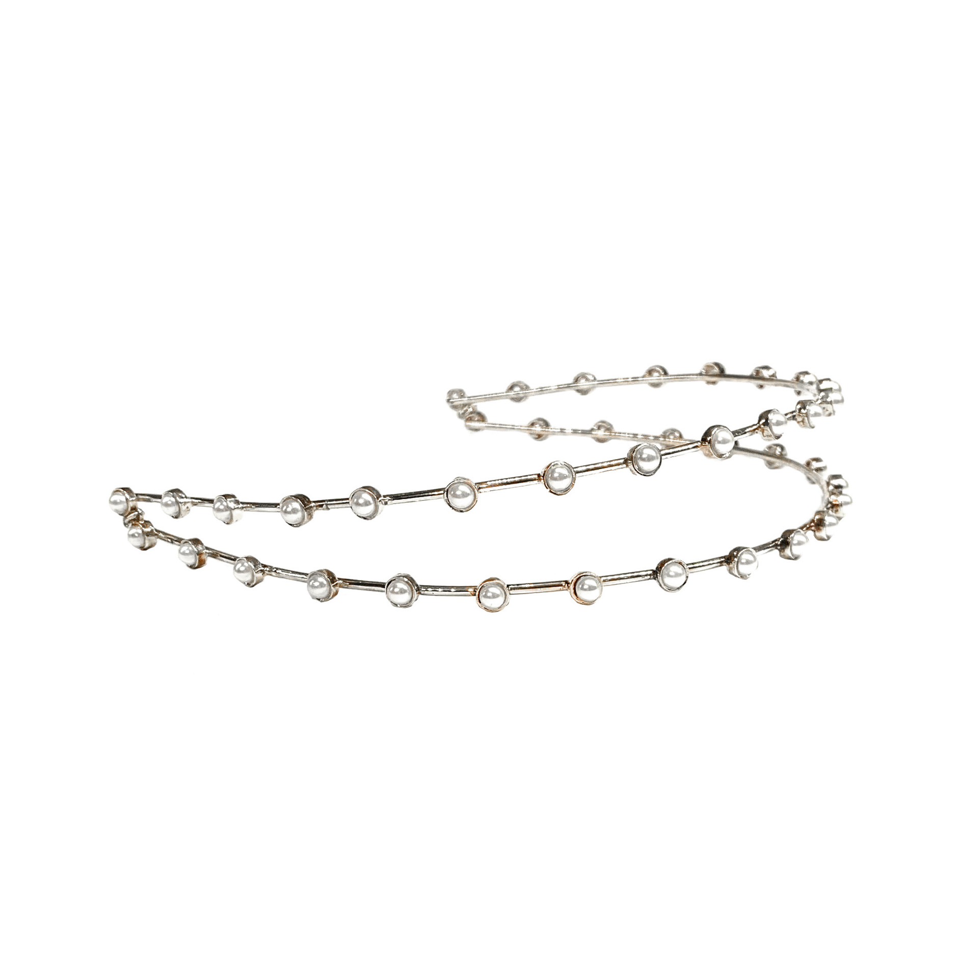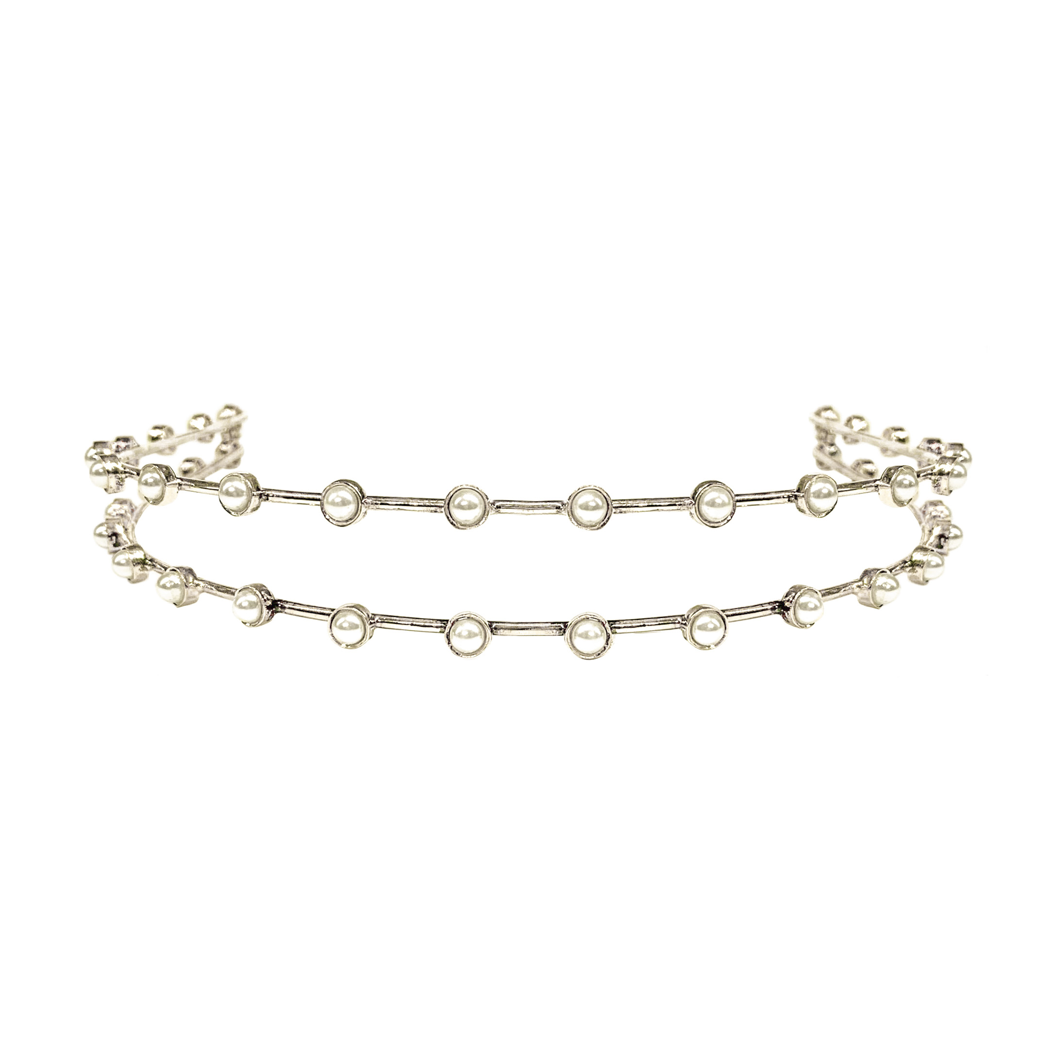 TIARA DUPLA FIO COM PÉROLAS – BANHO PRATA