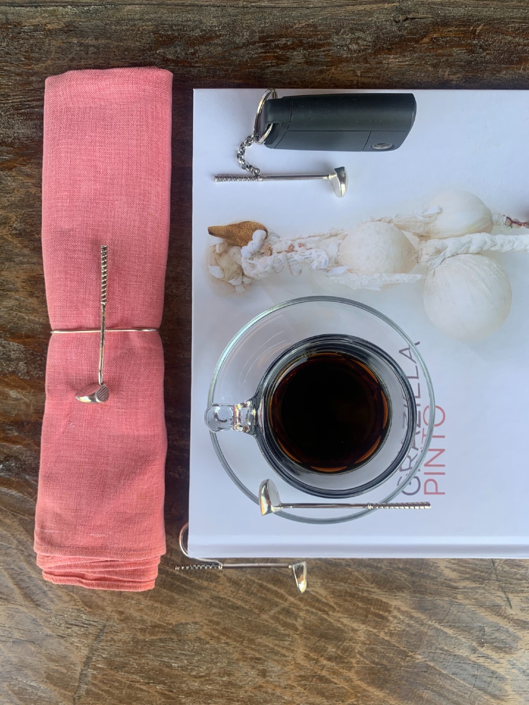 Porta guardanapo com banho de prata – medidas aproximadas: 7cm x 1,5cm