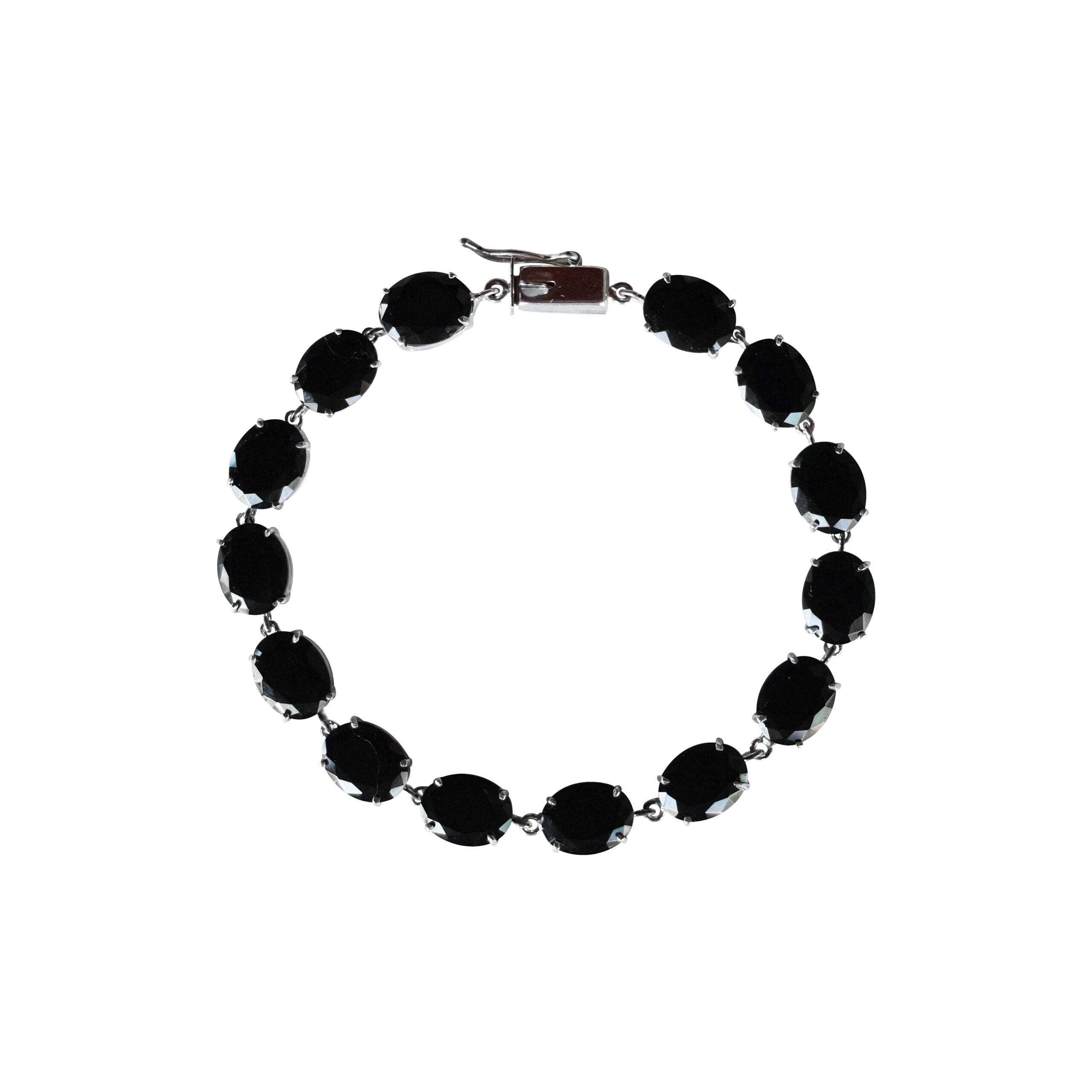 PULSEIRA EM PRATA DE LEI 925 COM ESPINÉLIO NEGRO E RÓDIO BRANCO