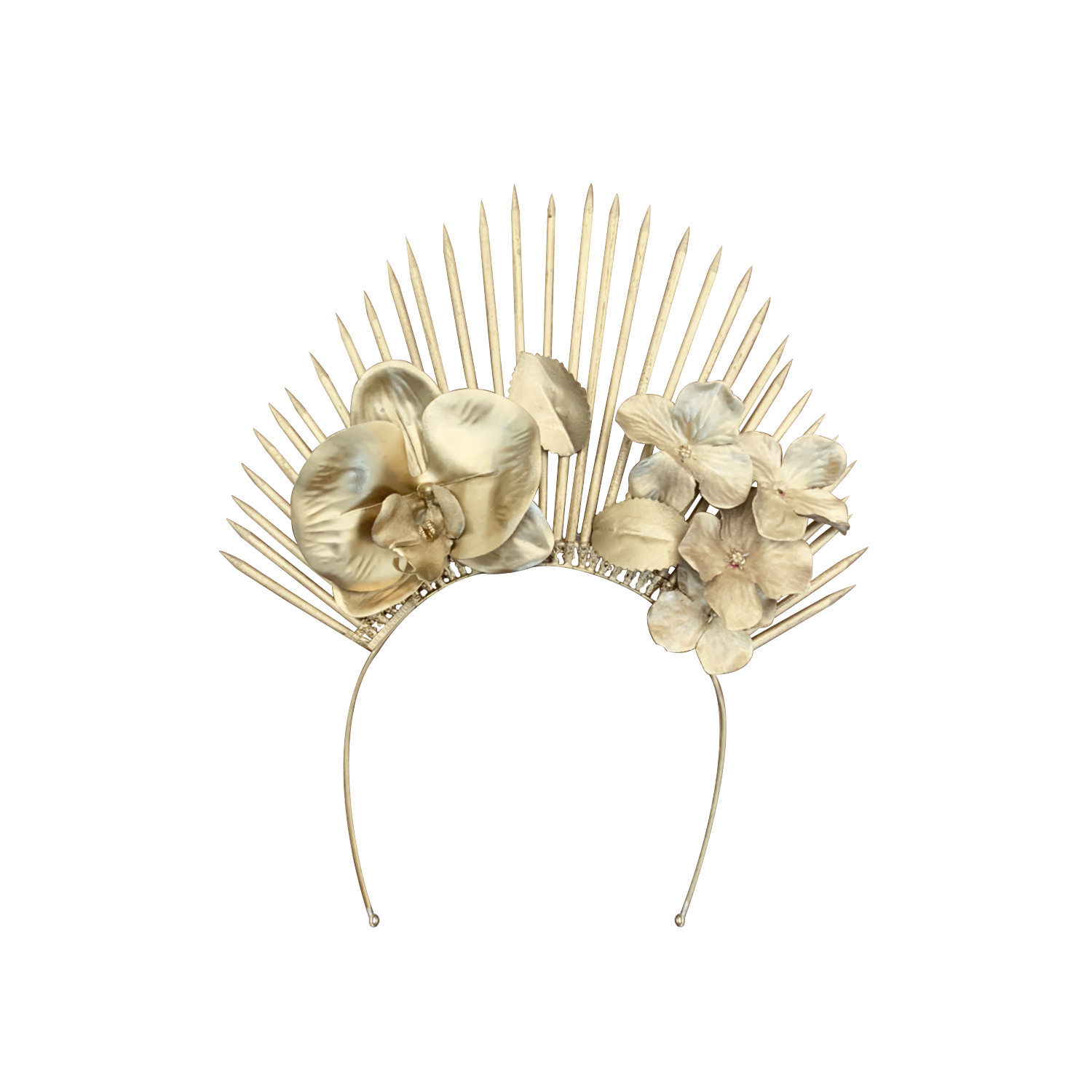Tiara spikes dourada e flores – tamanho único